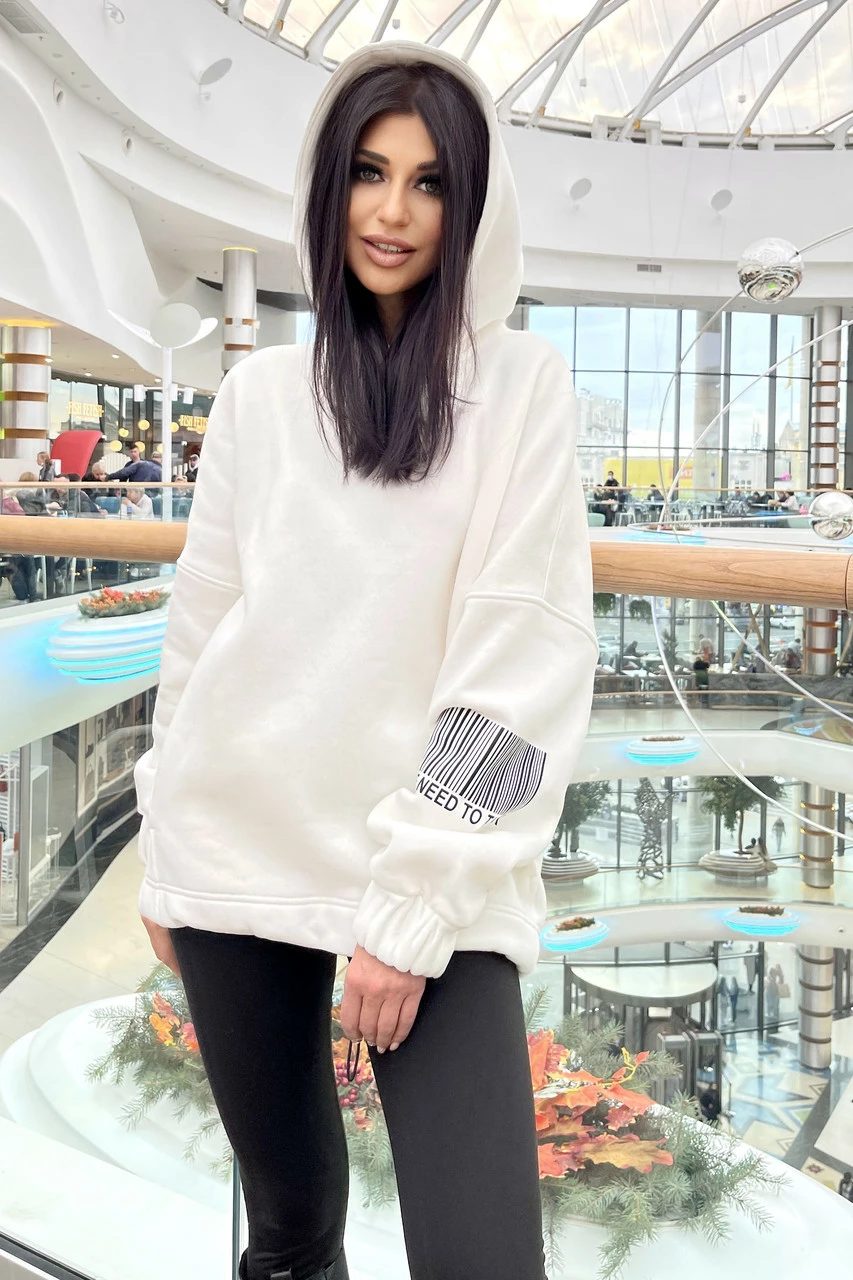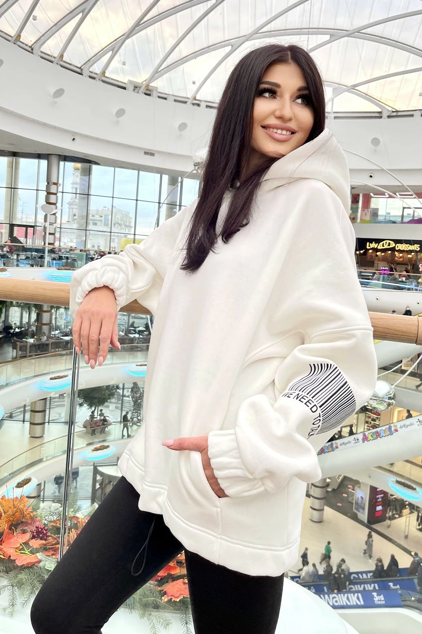 Объёмное худи owersize из теплого футера пенье - никогда не выходит из моды. Универсальная, комфортная вещь на все случаи жизни. Удобная длинна позволит носить худи с джинсами или лосинами, с ботфортами или юбкой макси, - сочетаний может быть великое множество. Внизу ширина худи регулируется шнурком. Удивительно качественная и комфортная ткань позволит Вам носить эту модель не один сезон. Прекрасный выбор на прохладную осень или зиму - теплая кофта с капюшоном, который в любой момент можно надеть или снять. Худи не обтягивает фигуру девушки, но и не выглядят объемно. Худи отлично скроет небольшие недостатки девушки любой комплекции, и при этом отлично выделит её достоинства. Широкая цветовая гамма позволит подобрать образ на любой вкус! На рукаве стильная накатка.