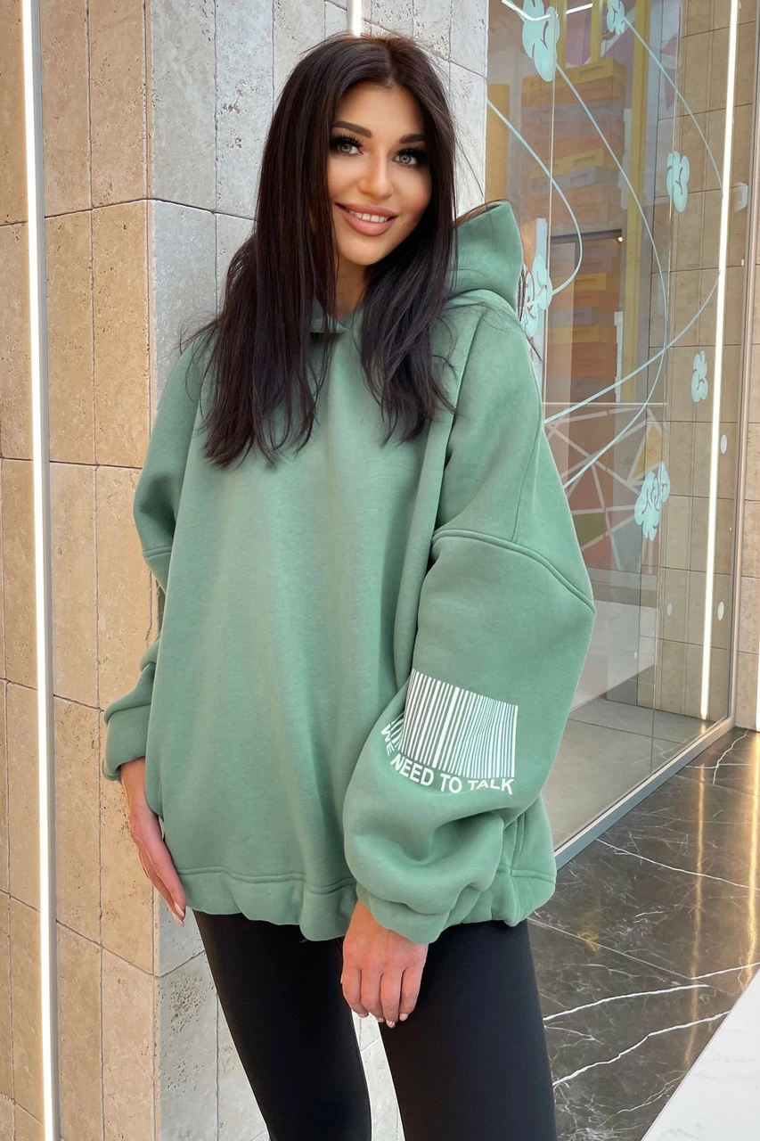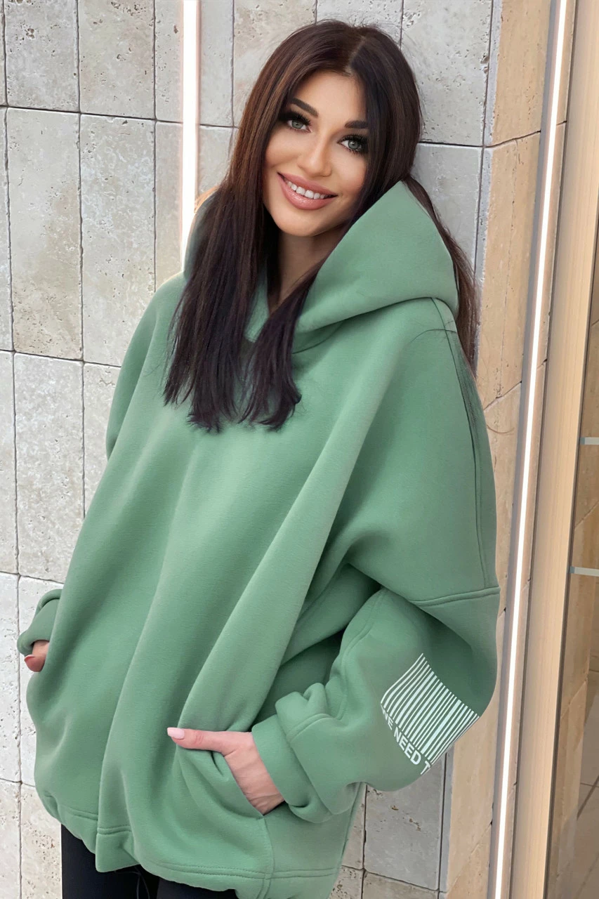 Объёмное худи owersize из теплого футера пенье - никогда не выходит из моды. Универсальная, комфортная вещь на все случаи жизни. Удобная длинна позволит носить худи с джинсами или лосинами, с ботфортами или юбкой макси, - сочетаний может быть великое множество. Внизу ширина худи регулируется шнурком. Удивительно качественная и комфортная ткань позволит Вам носить эту модель не один сезон. Прекрасный выбор на прохладную осень или зиму - теплая кофта с капюшоном, который в любой момент можно надеть или снять. Худи не обтягивает фигуру девушки, но и не выглядят объемно. Худи отлично скроет небольшие недостатки девушки любой комплекции, и при этом отлично выделит её достоинства. Широкая цветовая гамма позволит подобрать образ на любой вкус! На рукаве стильная накатка.