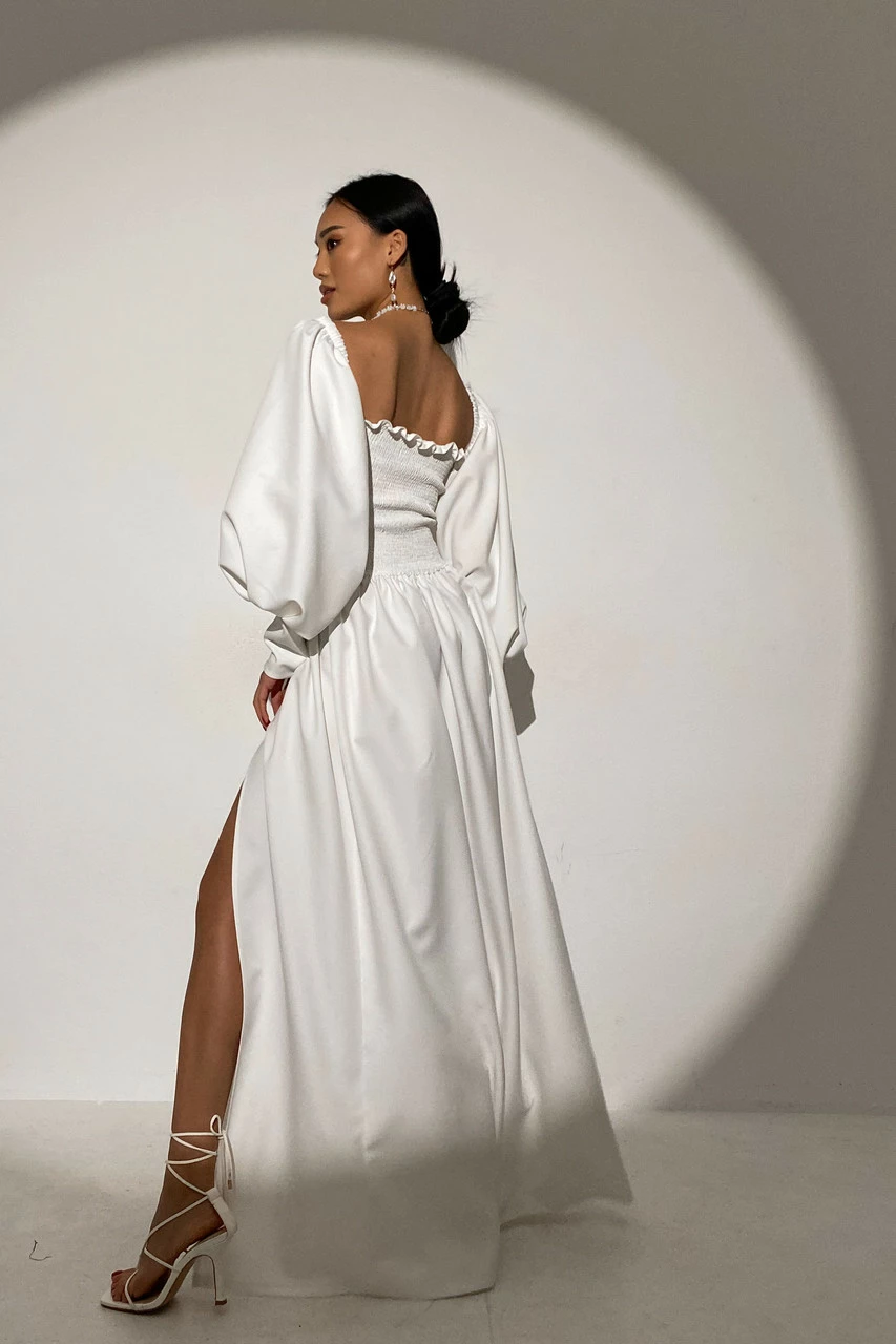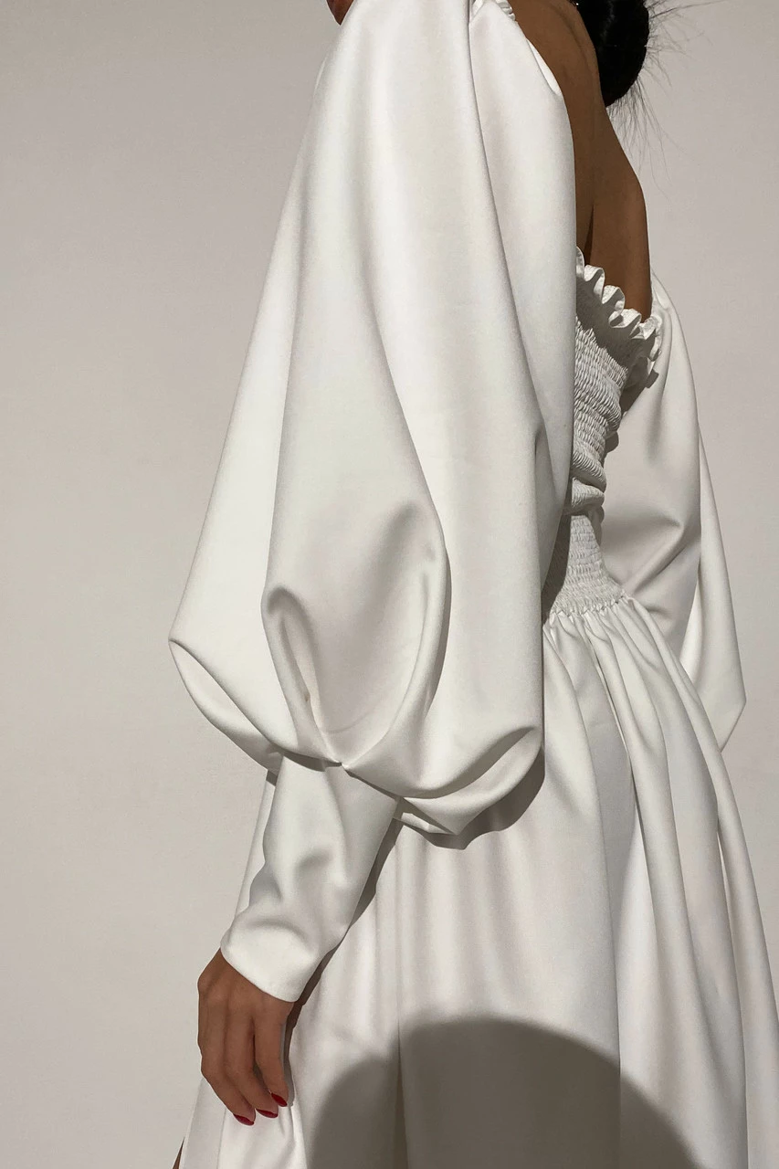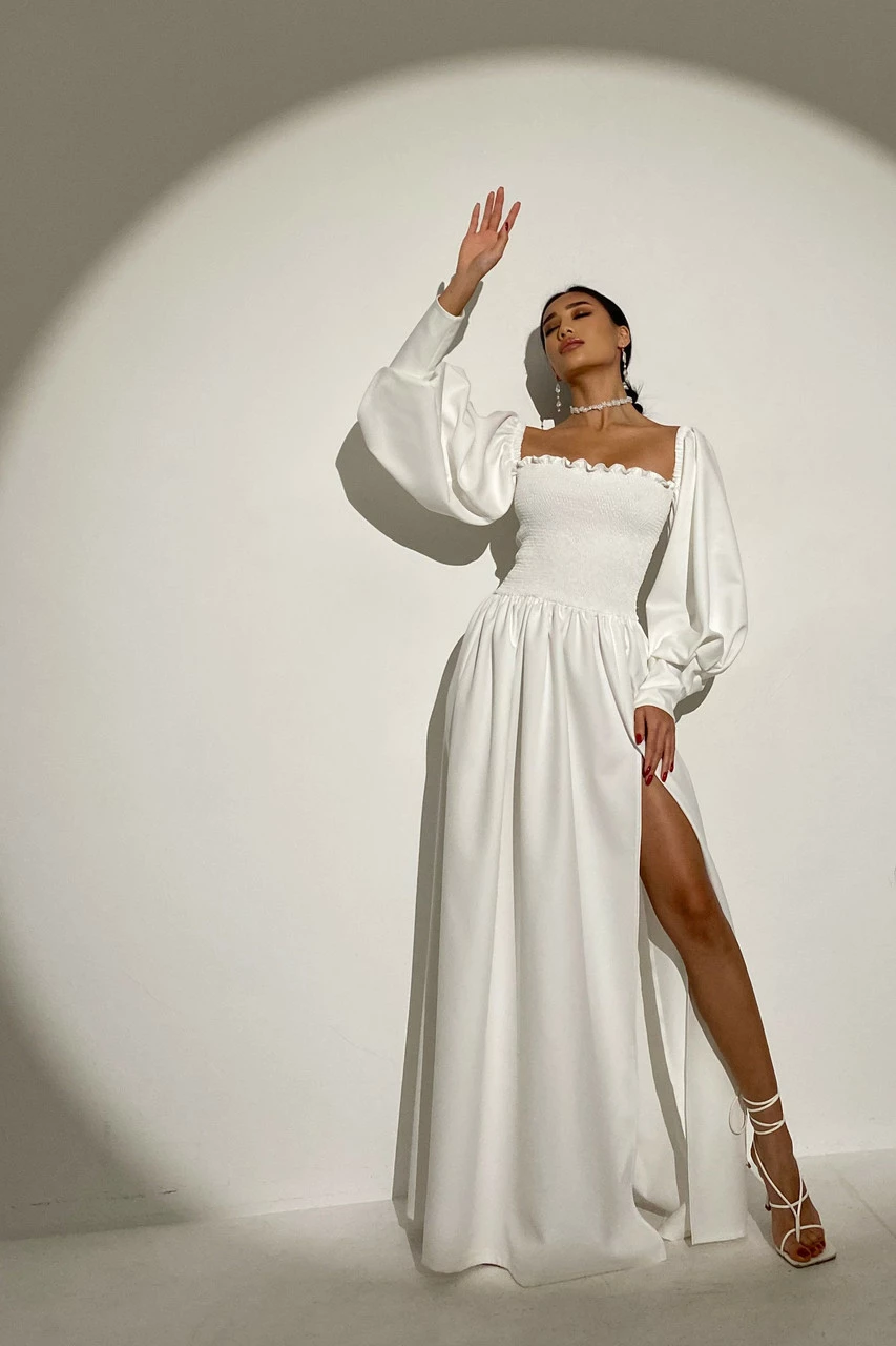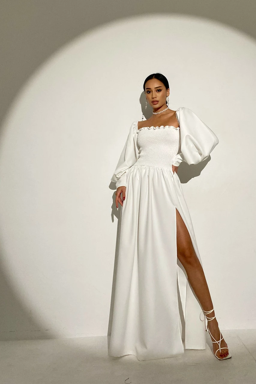 ● Декоративные элементы: резинка по лифу, высокий разрез по переду.