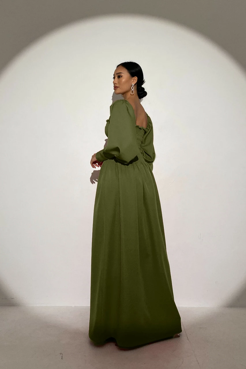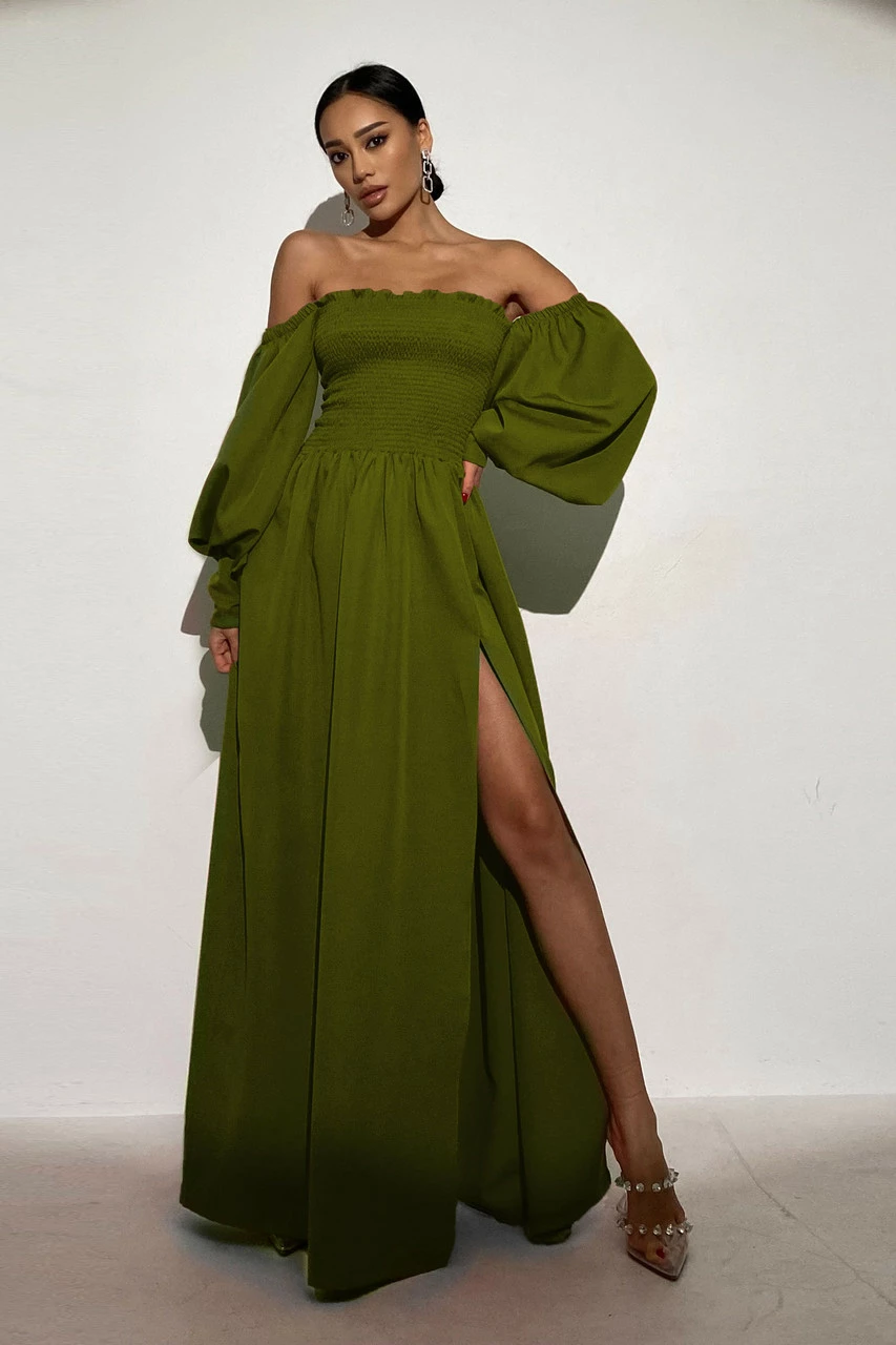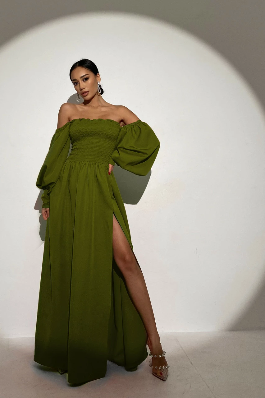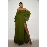 Шикарное и воздушное платье «Дилара» придаст нежности и женственности современный образ девушки. Платье Х-образного силуэта с пышным рукавом на высоком манжете. Лиф на резинке, отлично подойдет для стройных девушек да и обладательниц пышных форм. По переду предусмотрен высокий разрез. Рукав – пришивной на резинке. Пышная юбка придаст Вашему образу романтичности. К женственному образу смело добавляйте обувь на каблуке, компактные сумочки и элегантную бижутерию.