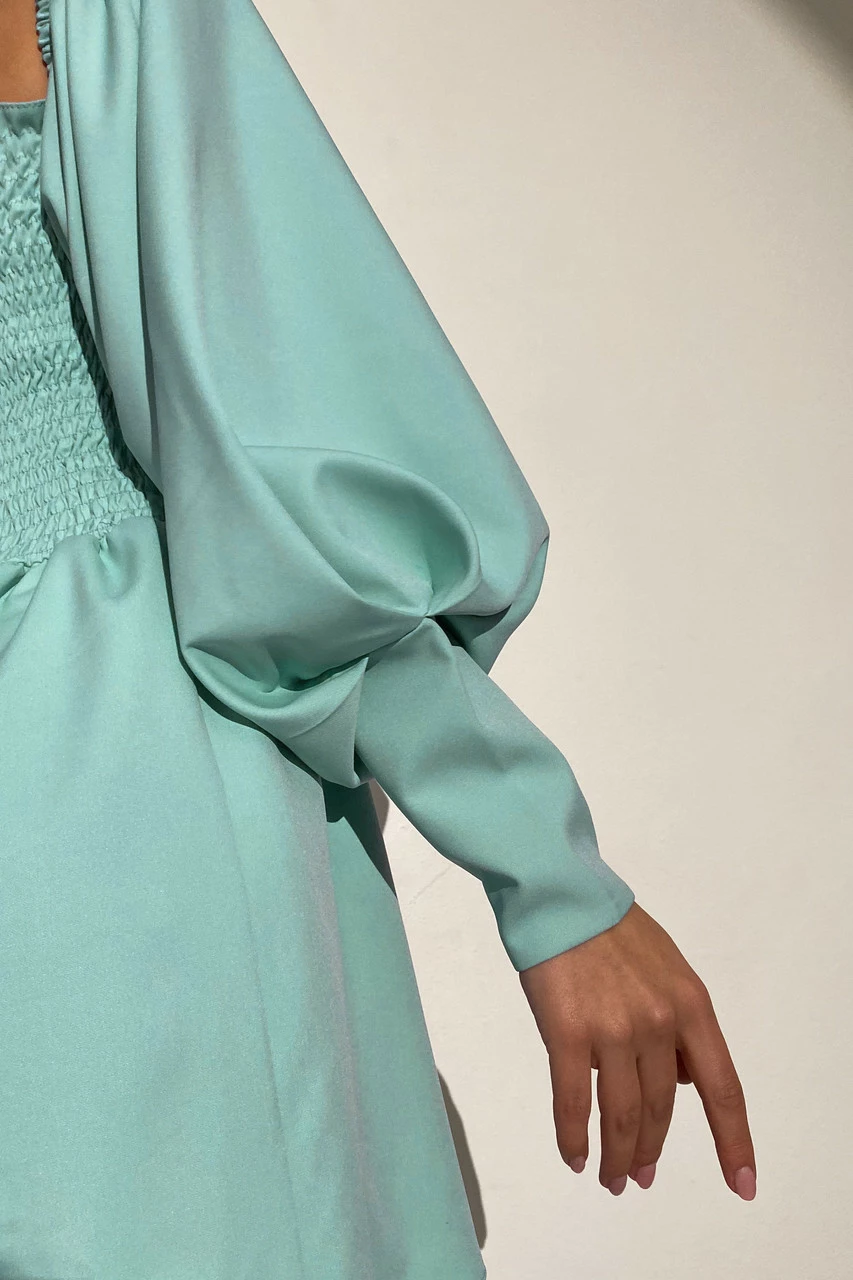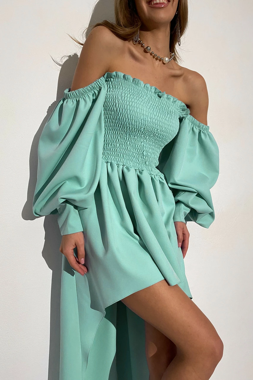 Женское и нежное платье «Малати» с пышной асимметричной юбкой станет отличным вариантом для празднования Нового Года 2022! Воздушное платье-резинка с пышными рукавами и высокими манжетами. Силуэт Х-образный. Короткая юбка по переду позволит продемонстрировать красивые ножки и придаст образу сексуальности! Платье представлено в классическом черном и бежевом, а также в нежно – голубом оттенке.
