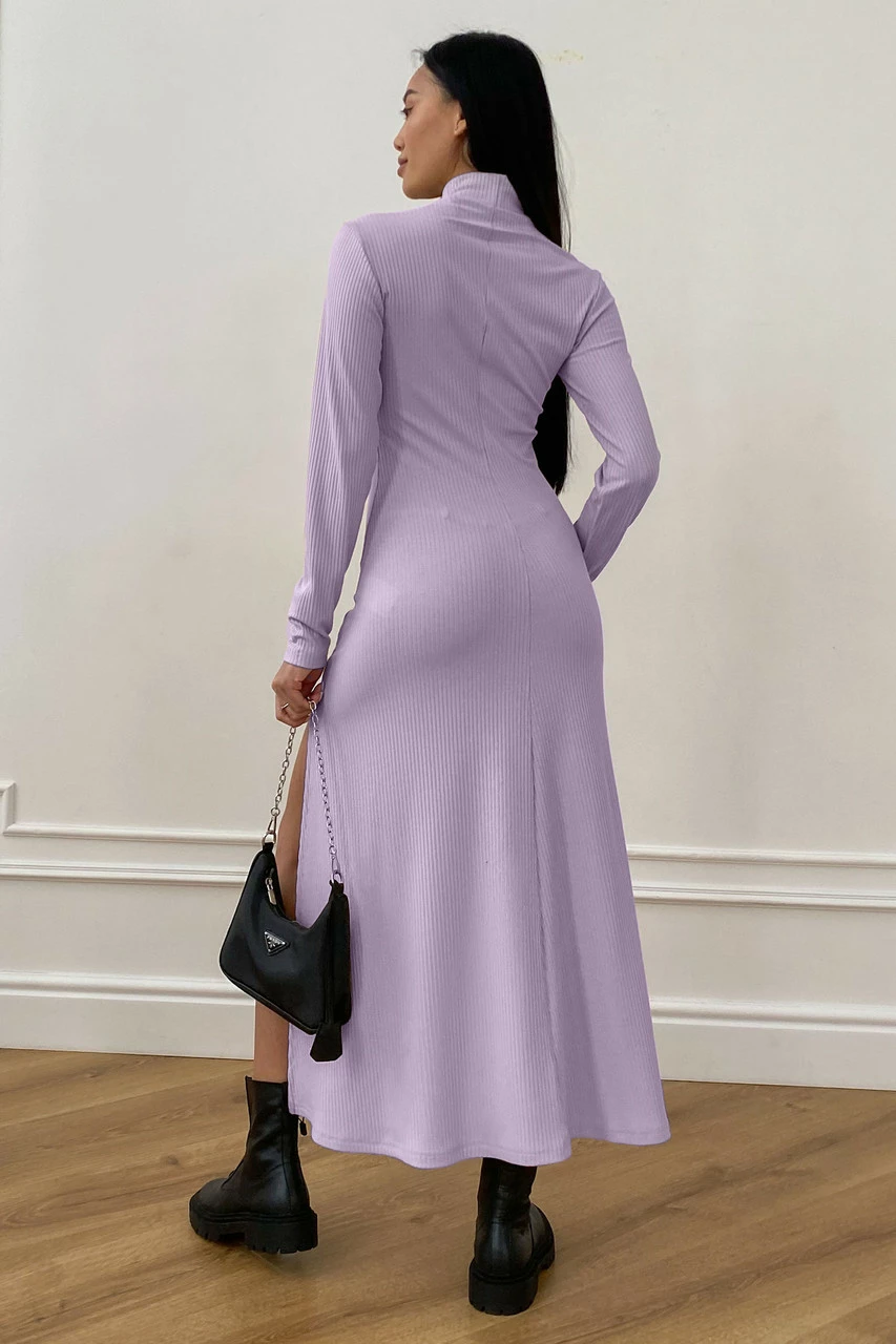 Приталенное платье облегающего кроя с высокими разрезами по бокам. Универсальный вариант для любого типа фигуры, разрезы по бокам эффектно вытягивают фигуру.  Модель выходит в актуальных осенних цветовых решениях. Такое платье отлично подойти для каждодневного использования а также для романтического ужина.