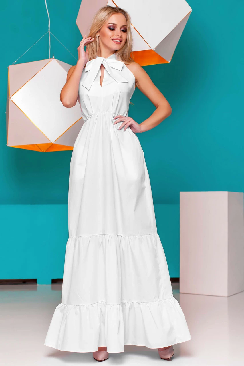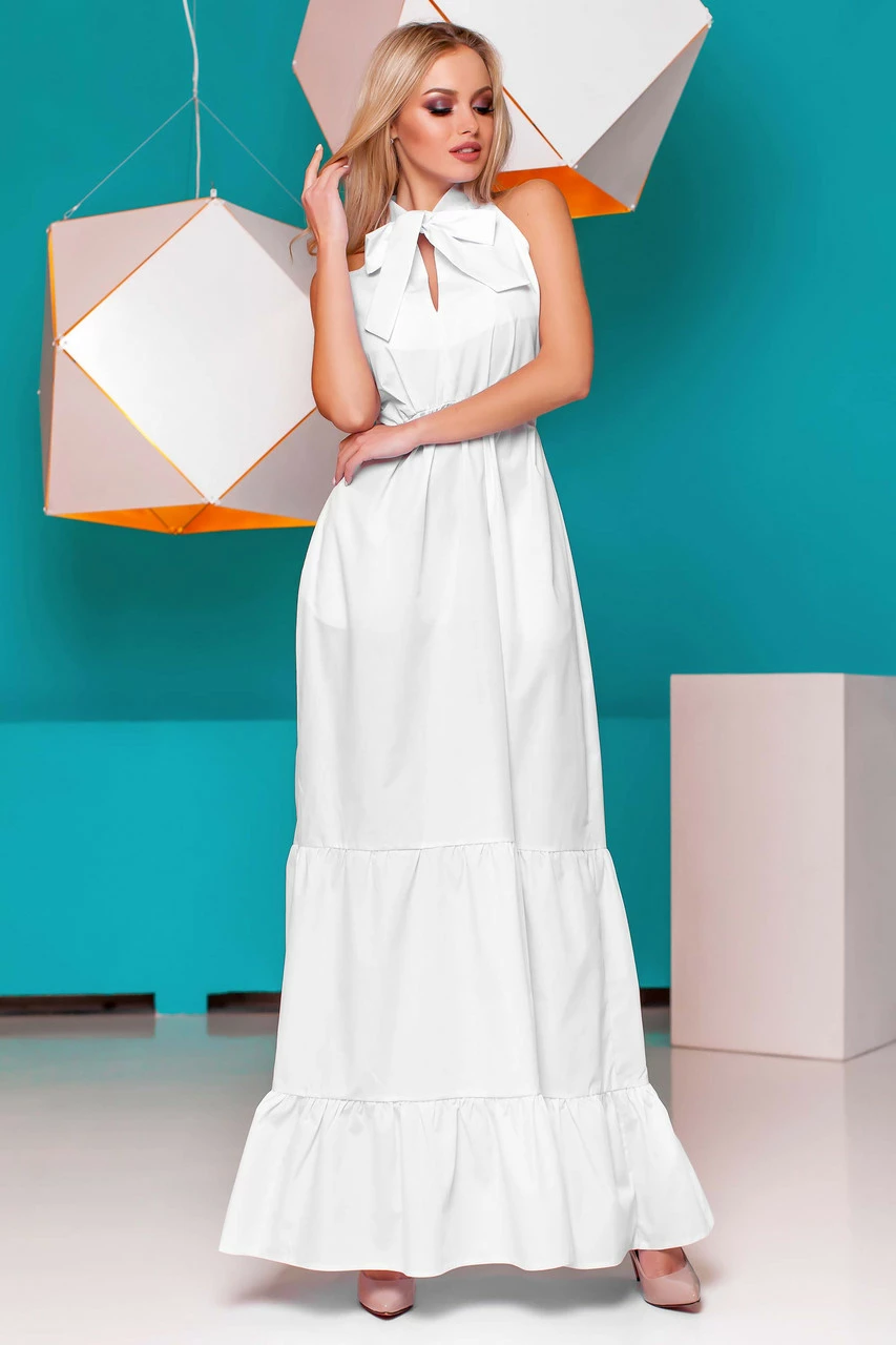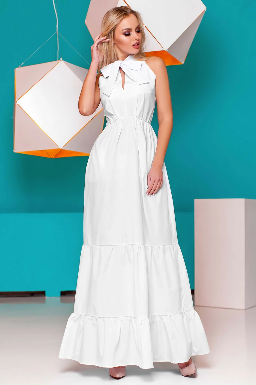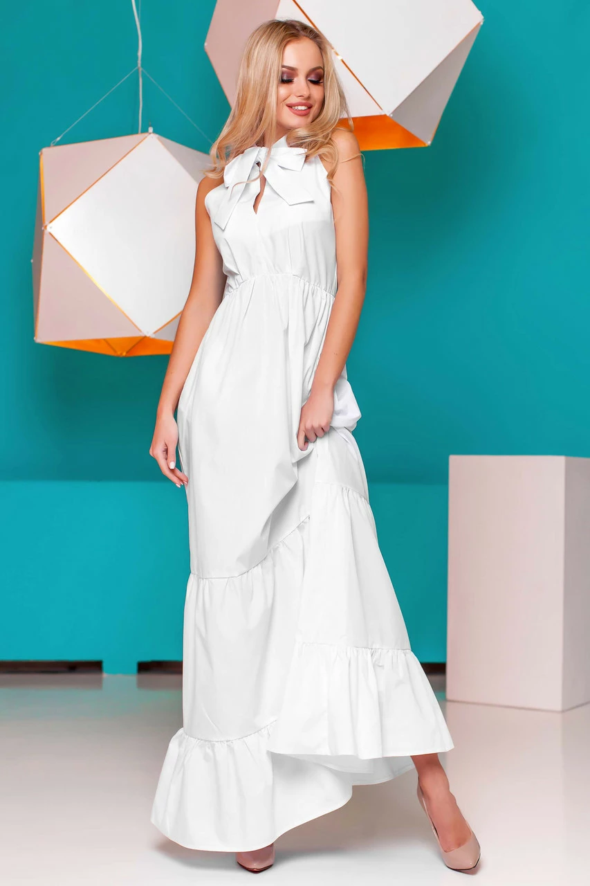 Лиф платья украшает завязку бант. Необычно легко открывается грудь