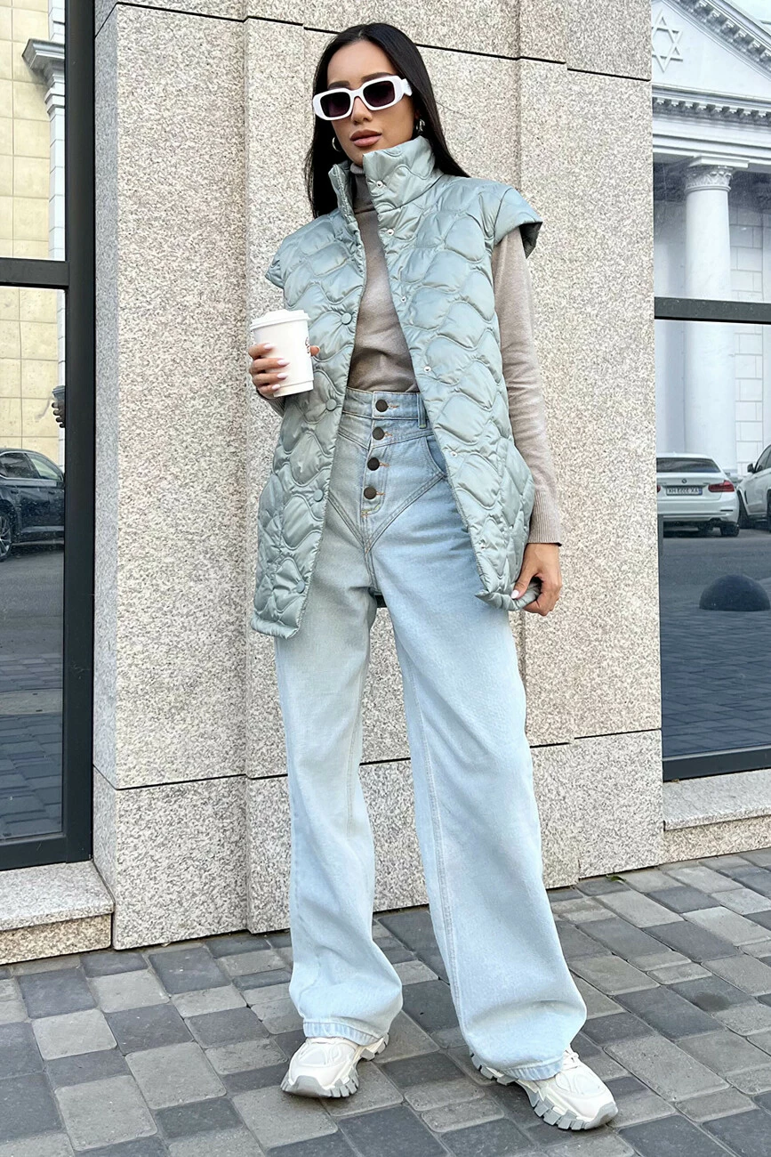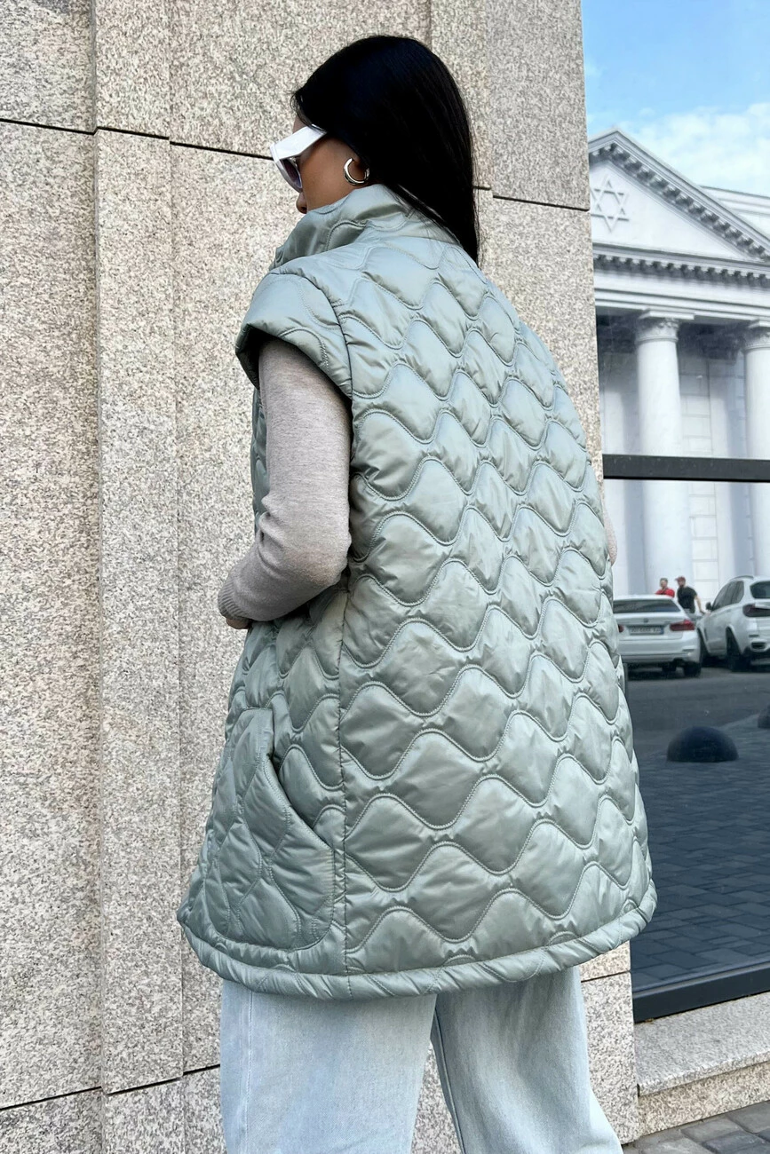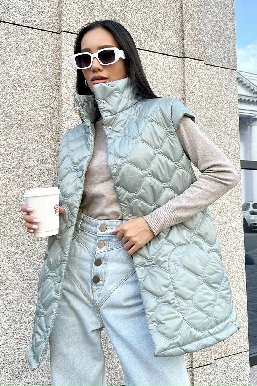 Теплий і затишний жилет, що застібається на кнопки, відрізняється зручністю і практичністю. Модель доповнена функціональними накладними кишенями. У комплекті пояс – в тон.