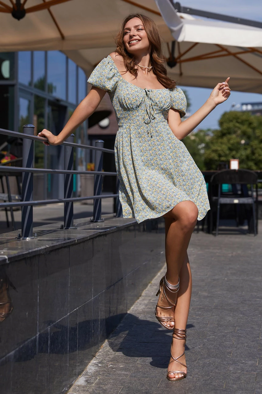 Сукня «Кенія» – це поєднання жіночного силуету з ніжним принтом дрібних польових кольорів. Простота та романтичність головна особливість цієї моделі. Прилеглий силует і ліф зі складанням нададуть образу досконалості та легкості. Така сукня гармонійно виглядатиме з високим підбором, а також зі спортивним взуттям.
