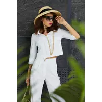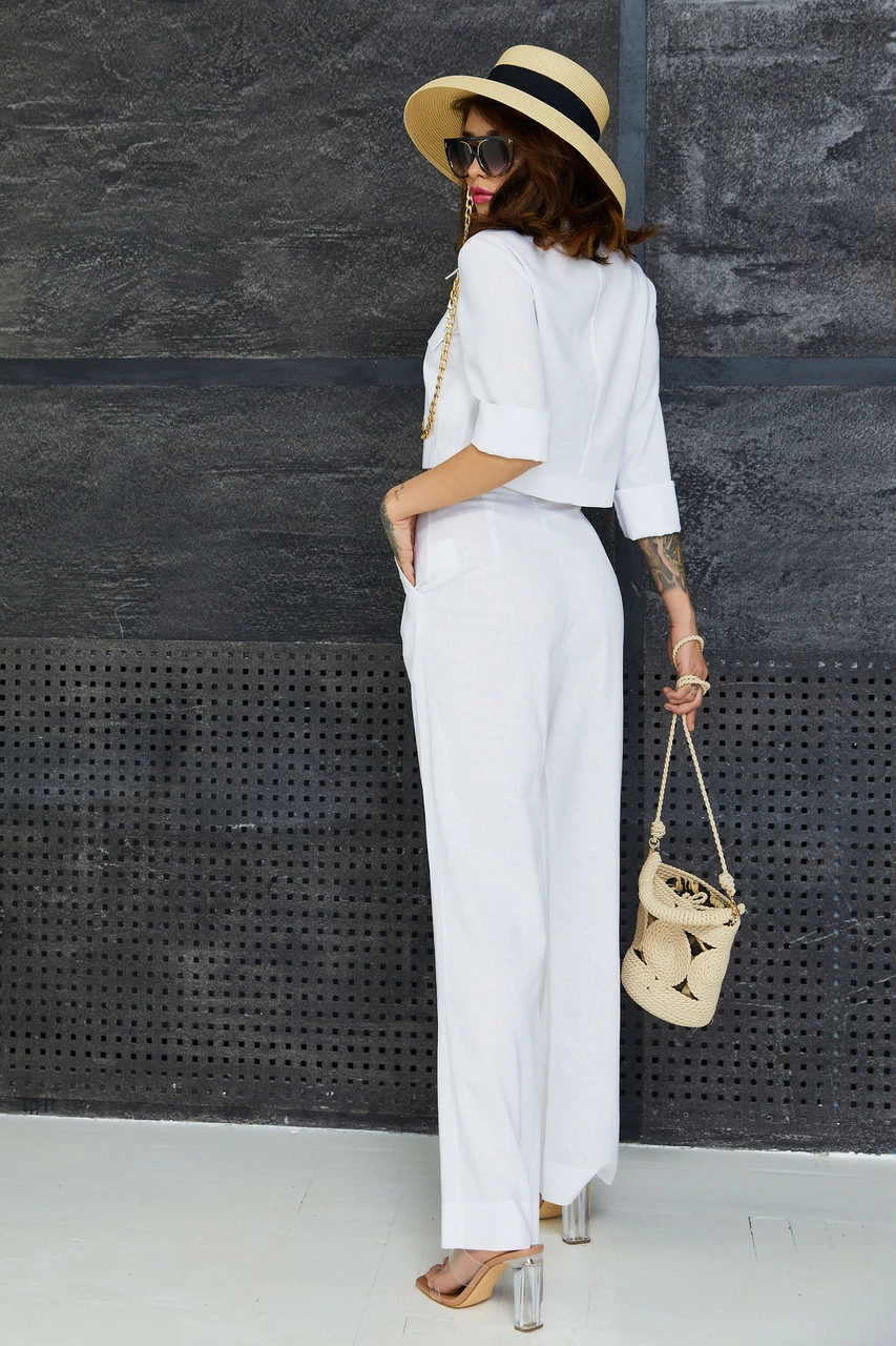 Наступило лето, а значит пора разбавить серые и монотонные образы яркими оттенками, и добавить в этот мир  сочных красок! Знакомься, теперь это самый главный " козырь" в твоём гардеробе, наш новенький костюм "Абу". При его создании мы подумали что ведь нет ничего приятнее и комфортнее чем лёгкий и нежный  лён в сочетании с классическим силуэтом. Изюминокой этого костюма стал короткий полуприлегающий жакет, с накладными карманами, рубашечным воротником и центральной застёжкой на петли и пуговицы. Брюки классические прямого кроя. Доступен к заказу в  нежно белом,  солнечно- жёлтом,  в цвете морской волны и сицилийского апельсина. Такой костюм можно удачно комбинировать с различными элементами одежды, а значит всегда оставаться в центре внимания и  ловить тысячи комплиментов!